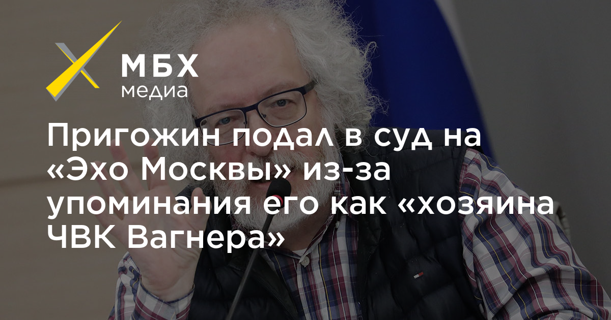 Бизнесмен Евгений Пригожин подал иск в Пресненский районный суд Москвы к ЗАО «Эхо Москвы», главному редактору радиостанции Алексею Венедиктову и главному редактору сайта Виталию Рувинскому из-за того, что Пригожина назвали в эфире одной из программ «хозяином ЧВК Вагнера». Об этом сообщается в телеграм-канале «Кепка Пригожина».