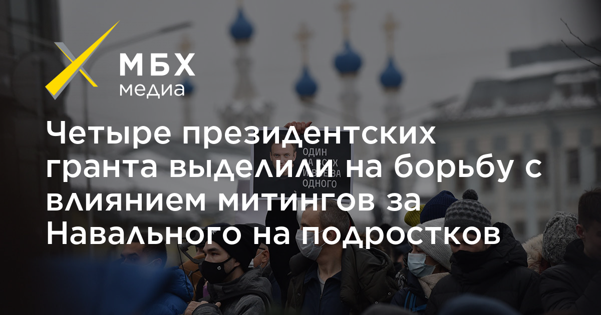 Две общественные организации и два фонда получили президентские гранты на проекты, так или иначе направленные на борьбу с влиянием митингов в поддержку Алексея Навального на подростков. К такому выводу пришло «МБХ медиа», проанализировав результаты второго конкурса президентских грантов 2021 года.