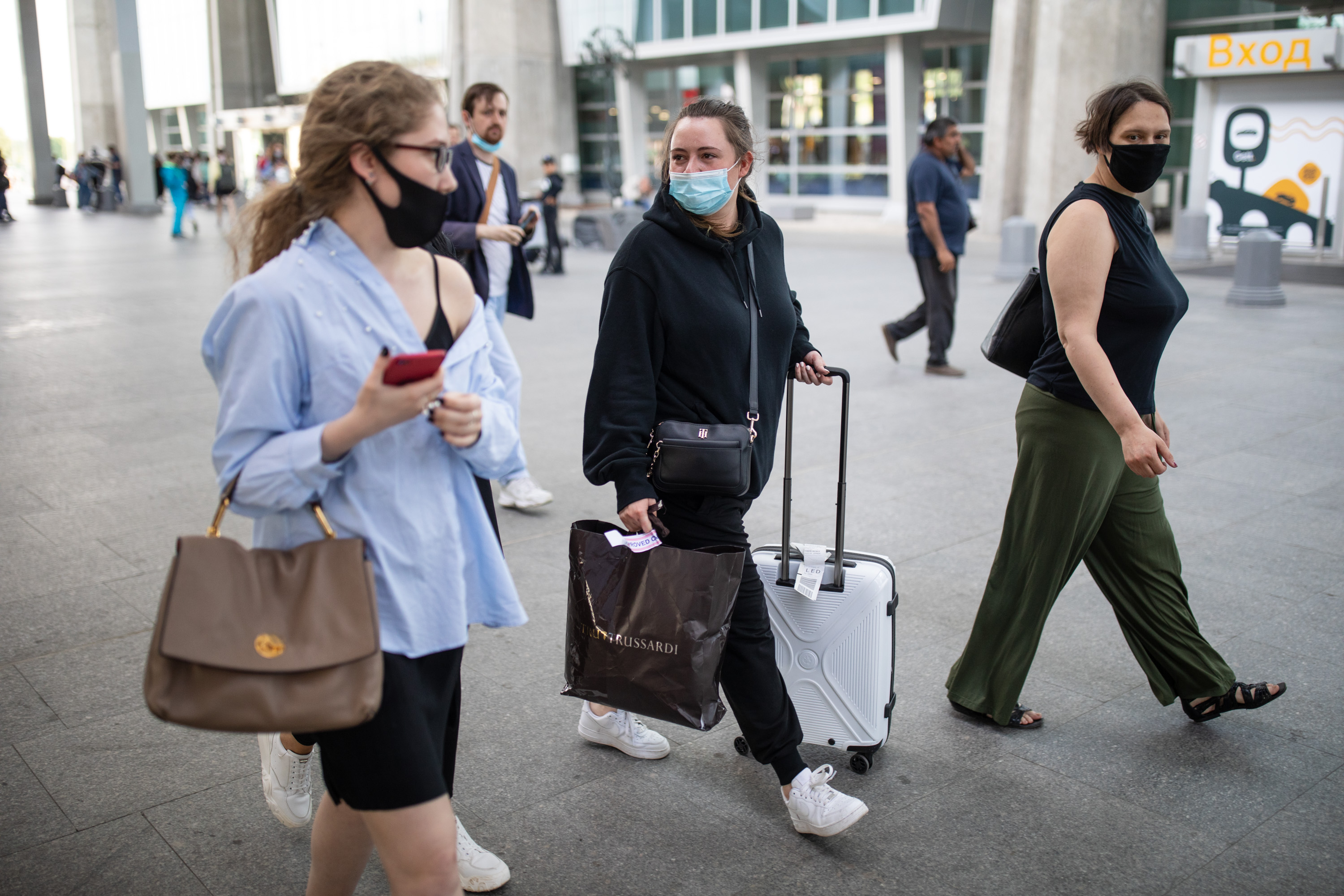 Анна Манылова в аэропорту «Пулково». Фото: Давид Френкель / Медиазона