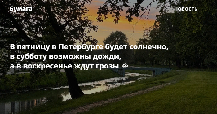 В эти выходные в Петербурге всё еще будет жарко, но к воскресенью погода, вероятно, испортится. Это следует из данных Гидрометцентра.