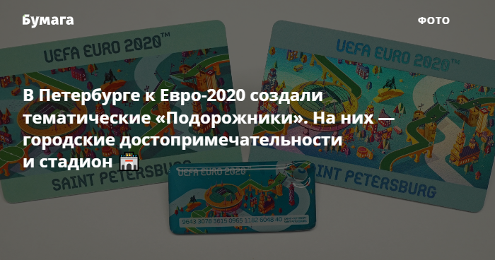 В Петербурге с 11 июня можно купить тематические «Подорожники» и проездные-брелоки, созданные к Евро-2020. Они продаются на некоторых станциях метро, их тираж ограничен. Стоимость — 60 и 100 рублей. «Бумага» показывает новое оформление.