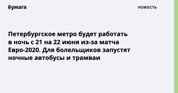 Петербургское метро будет работать в ночь с 21 на 22 июня из-за позднего окончания матча на стадионе «Газпром Арена» в рамках Евро-2020. Об этом сообщили в пресс-службе петербургской подземки.