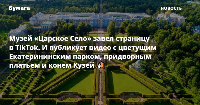 Музей-заповедник «Царское Село» завел аккаунт в TikTok — и за два дня опубликовал уже шесть роликов.