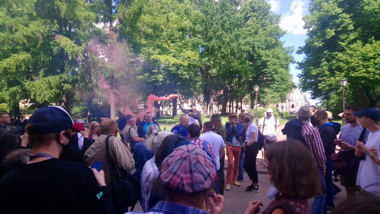 Павел Крисевич — известный в Петербурге акционист. В июне 2020 года во время оглашения приговора обвиняемым по делу запрещенной и признанной террористической организации "Сеть" Виктору Филинкову и Юлию Бояршинову Павел Крисевич перед зданием суда зажег файер, раскидал листовки с призывом освободить обвняемых и приковал себя наручниками к ограде. Его задержали вместе с еще 30 участниками акции поддержки. Позднее суд счел нецензурной бранью фразу "Антифашизм — не преступление", которую выкрикивал Крисевич у здания суда. Его оштрафовали на 500 рублей.