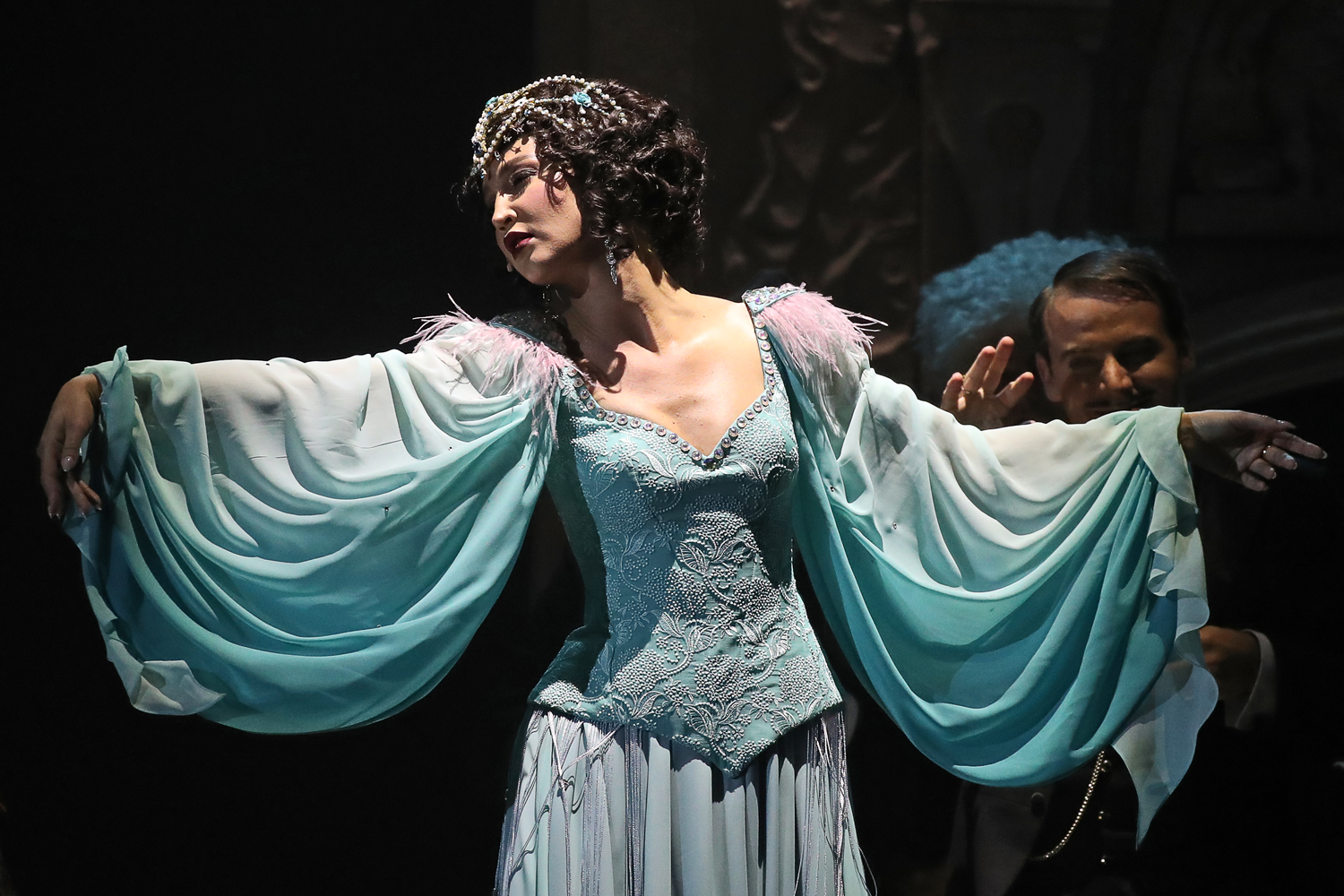 Вскоре возникает певица Бэлла Шанталь (Ольга Бузова) в блестках и перьях. Она поет на приеме по случаю приезда в город генерала-губернатора Алексея Смагина. В спектакле до этого уже было много песен: Бузова даже на фоне этих номеров выглядит довольно бледно.