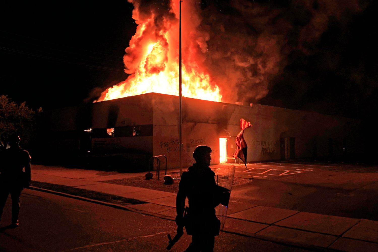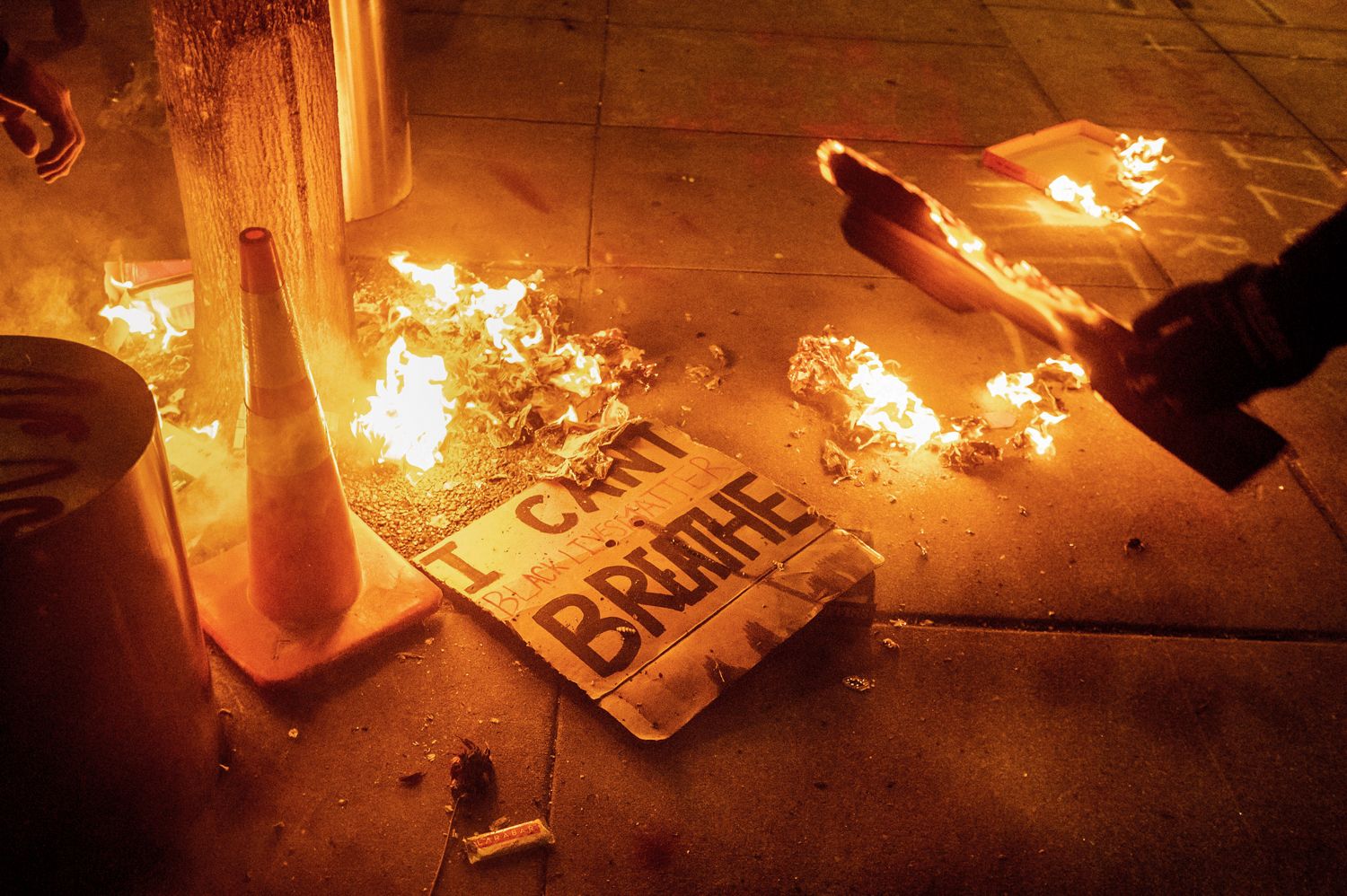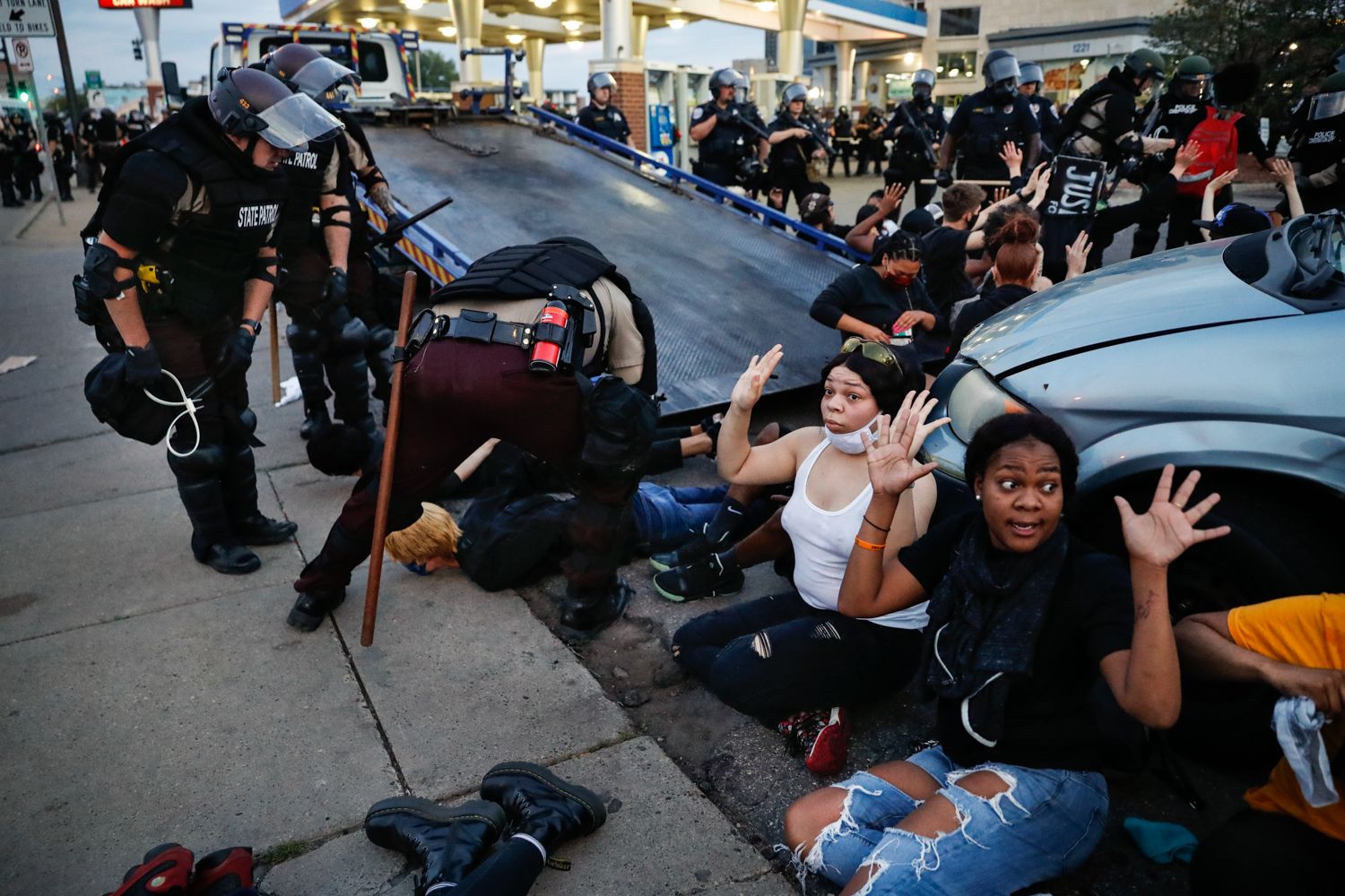 John Minchillo / AP / Scanpix / LETA Полиция идет по улице Сент-Пола. 28 мая 2020 годаRingo H.W. Chiu / AP / Scanpix / LETA Участница протестов, начавшихся из-за гибели Джорджа Флойда. Лос-Анджелес, 30 мая 2020 годаAlex Brandon / AP / Scanpix / LETA Протестующий смотрит на бойца Национальной гвардии. Вашингтон, 3 июня 2020 годаMike Stewart / AP / Scanpix / LETA Столкновения полицейских с демонстрантами возле здания CNN. Атланта, 29 мая 2020 годаJohn Minchillo / AP / Scanpix / LETA Протестующие перед горящим кафе. Миннеаполис, 29 мая 2020 годаJohn Minchillo / AP / Scanpix / LETA Задержания на заправочной станции. Миннеаполис, 31 мая 2020 годаEvan Vucci / AP / Scanpix / LETA Протестующие переворачивают автомобиль недалеко от Белого дома. Вашингтон, 31 мая 2020 годаDavid Goldman / AP / Scanpix / LETA Поджог здания исправительного управления во время протестов после убийства Джейкоба Блейка. Кеноша, 24 августа 2020 годаMarcio Jose Sanchez / AP / Scanpix / LETA Участник марша прячется от слезоточивого газа. Портленд, 29 июля 2020 годаRingo H.W. Chiu / AP / Scanpix / LETA Девушка пытается защитить полицейский автомобиль. Лос-Анджелес, 30 мая 2020 года.Evan Vucci / AP / Scanpix / LETA Демонстранты возле Белого дома. Вашингтон, 4 июля 2020 годаFrank Franklin II / AP / Scanpix / LETA Полицейские задерживают людей в разграбленном магазине Balenciaga. Нью-Йорк, 2 июня 2020 годаNoah Berger / AP / Scanpix / LETA Плакат с надписью «Я не могу дышать» (эти слова говорил Джордж Флойд задерживавшим его полицейским). Портленд, 21 июля 2020 года