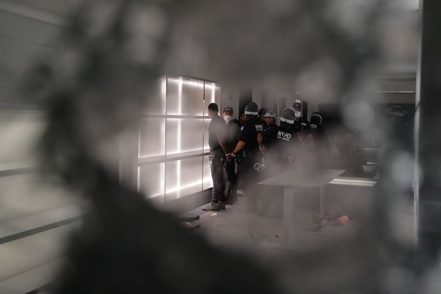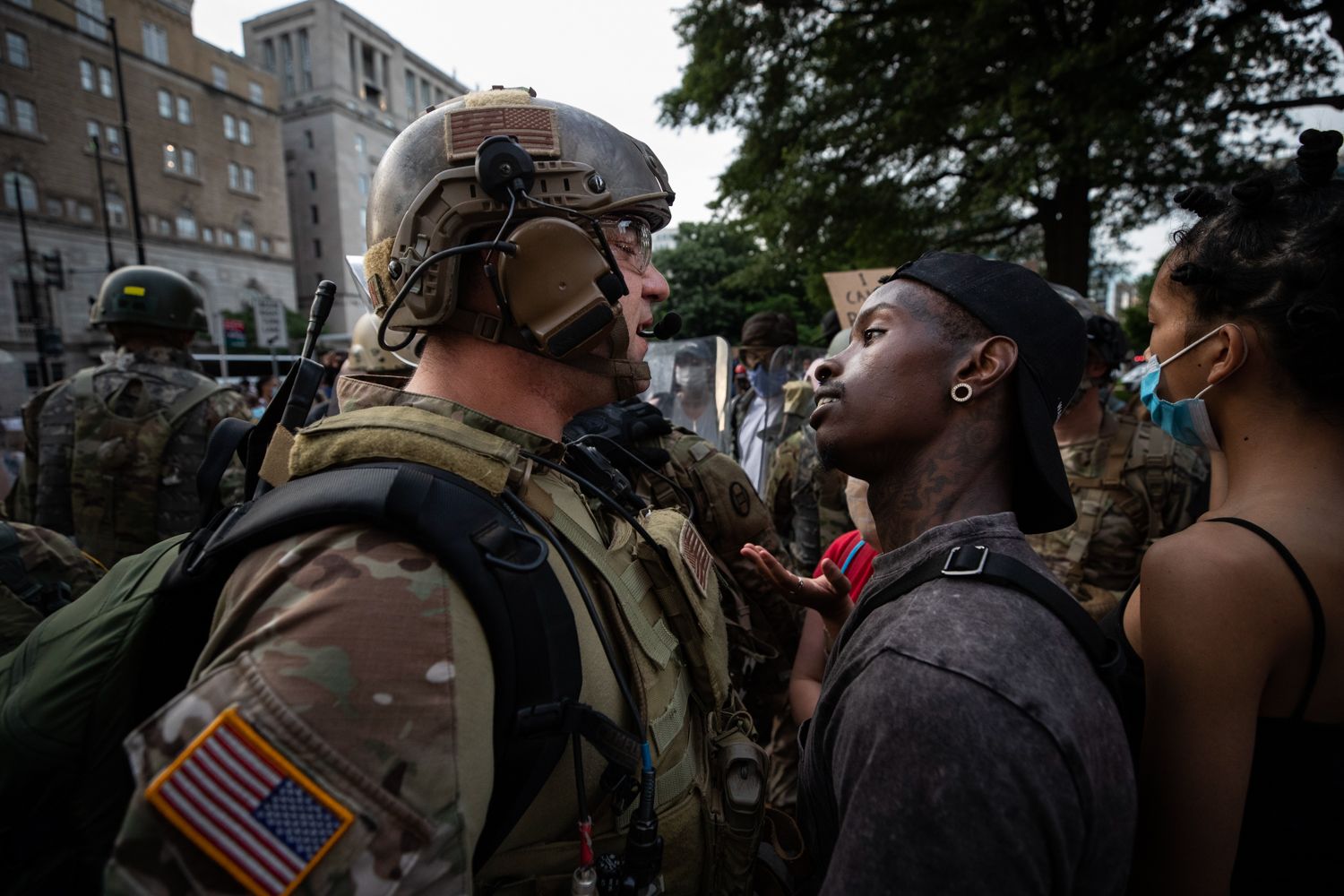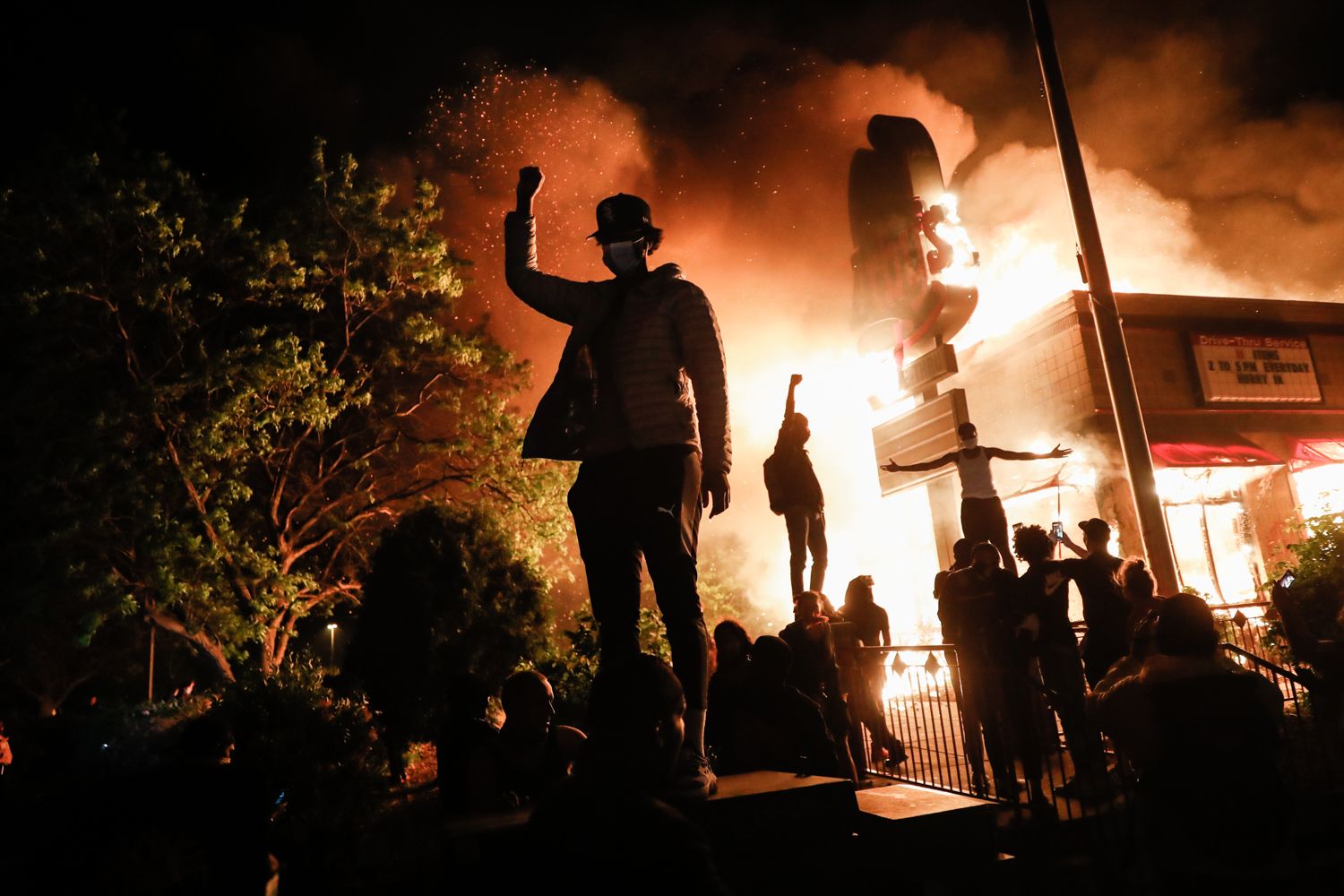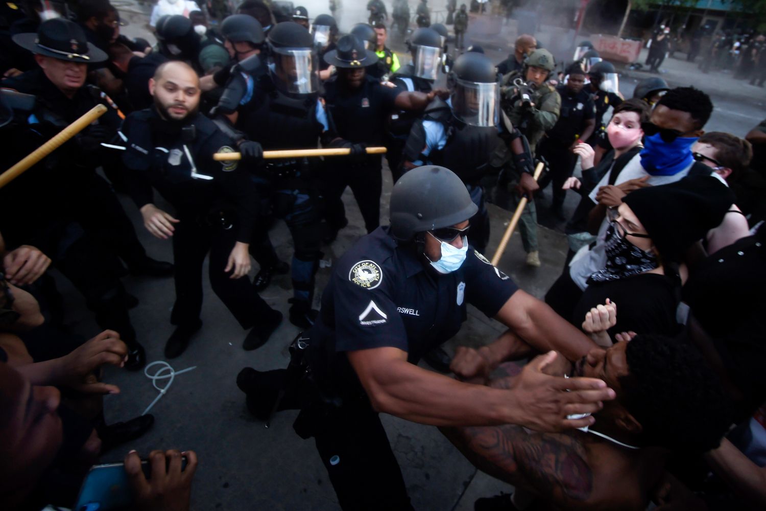 John Minchillo / AP / Scanpix / LETA Полиция идет по улице Сент-Пола. 28 мая 2020 годаRingo H.W. Chiu / AP / Scanpix / LETA Участница протестов, начавшихся из-за гибели Джорджа Флойда. Лос-Анджелес, 30 мая 2020 годаAlex Brandon / AP / Scanpix / LETA Протестующий смотрит на бойца Национальной гвардии. Вашингтон, 3 июня 2020 годаMike Stewart / AP / Scanpix / LETA Столкновения полицейских с демонстрантами возле здания CNN. Атланта, 29 мая 2020 годаJohn Minchillo / AP / Scanpix / LETA Протестующие перед горящим кафе. Миннеаполис, 29 мая 2020 годаJohn Minchillo / AP / Scanpix / LETA Задержания на заправочной станции. Миннеаполис, 31 мая 2020 годаEvan Vucci / AP / Scanpix / LETA Протестующие переворачивают автомобиль недалеко от Белого дома. Вашингтон, 31 мая 2020 годаDavid Goldman / AP / Scanpix / LETA Поджог здания исправительного управления во время протестов после убийства Джейкоба Блейка. Кеноша, 24 августа 2020 годаMarcio Jose Sanchez / AP / Scanpix / LETA Участник марша прячется от слезоточивого газа. Портленд, 29 июля 2020 годаRingo H.W. Chiu / AP / Scanpix / LETA Девушка пытается защитить полицейский автомобиль. Лос-Анджелес, 30 мая 2020 года.Evan Vucci / AP / Scanpix / LETA Демонстранты возле Белого дома. Вашингтон, 4 июля 2020 годаFrank Franklin II / AP / Scanpix / LETA Полицейские задерживают людей в разграбленном магазине Balenciaga. Нью-Йорк, 2 июня 2020 годаNoah Berger / AP / Scanpix / LETA Плакат с надписью «Я не могу дышать» (эти слова говорил Джордж Флойд задерживавшим его полицейским). Портленд, 21 июля 2020 года