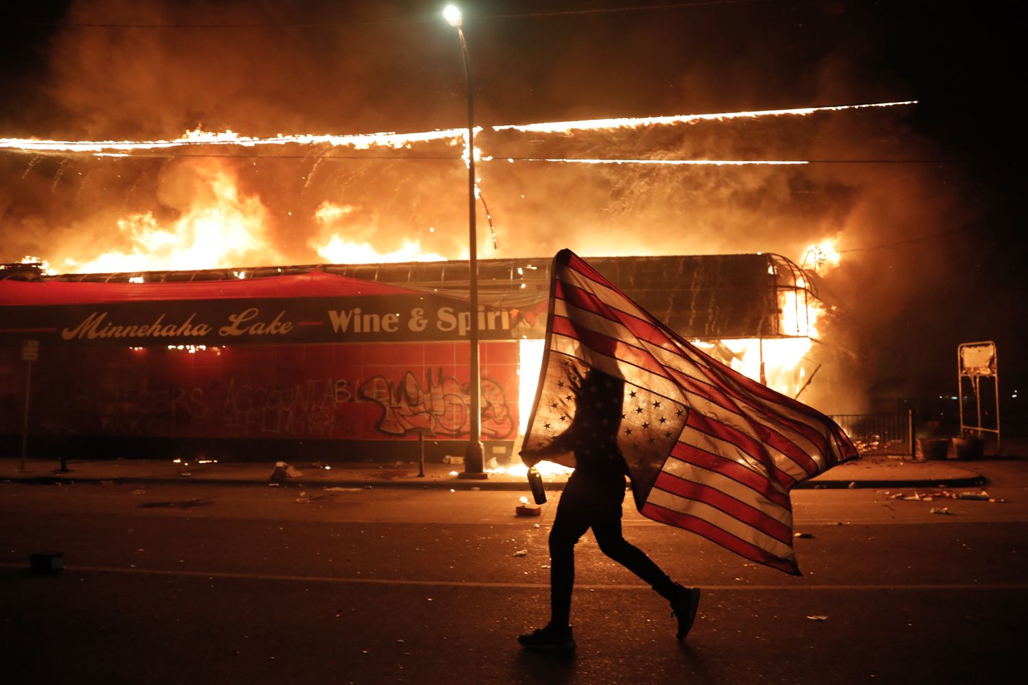 Julio Cortez / AP / Scanpix / LETA Протестующий несет перевернутый флаг США. Миннеаполис, 28 мая 2020 года