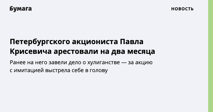 Петербургского акциониста Павла Крисевича арестовали на два месяца