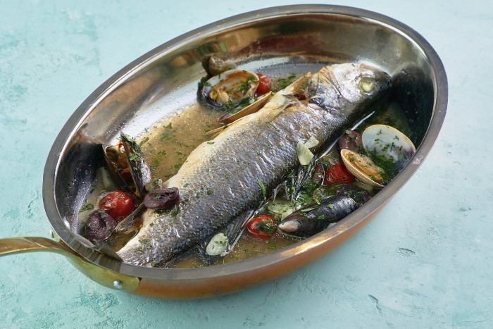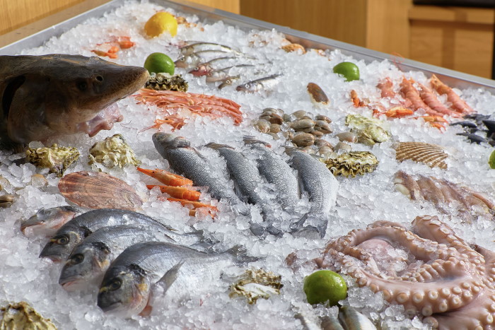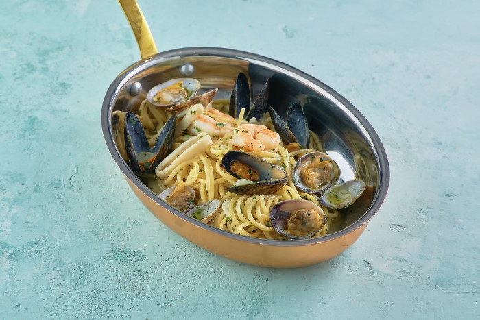 Гостям предлагают блюда в стиле фьюжн: жюльен с креветками, раковыми шейками, гребешком и крабом, осетра по-строгановски с трюфельным маслом, голубцы из савойской капусты с крабом и креветкой и другие подобные позиции.