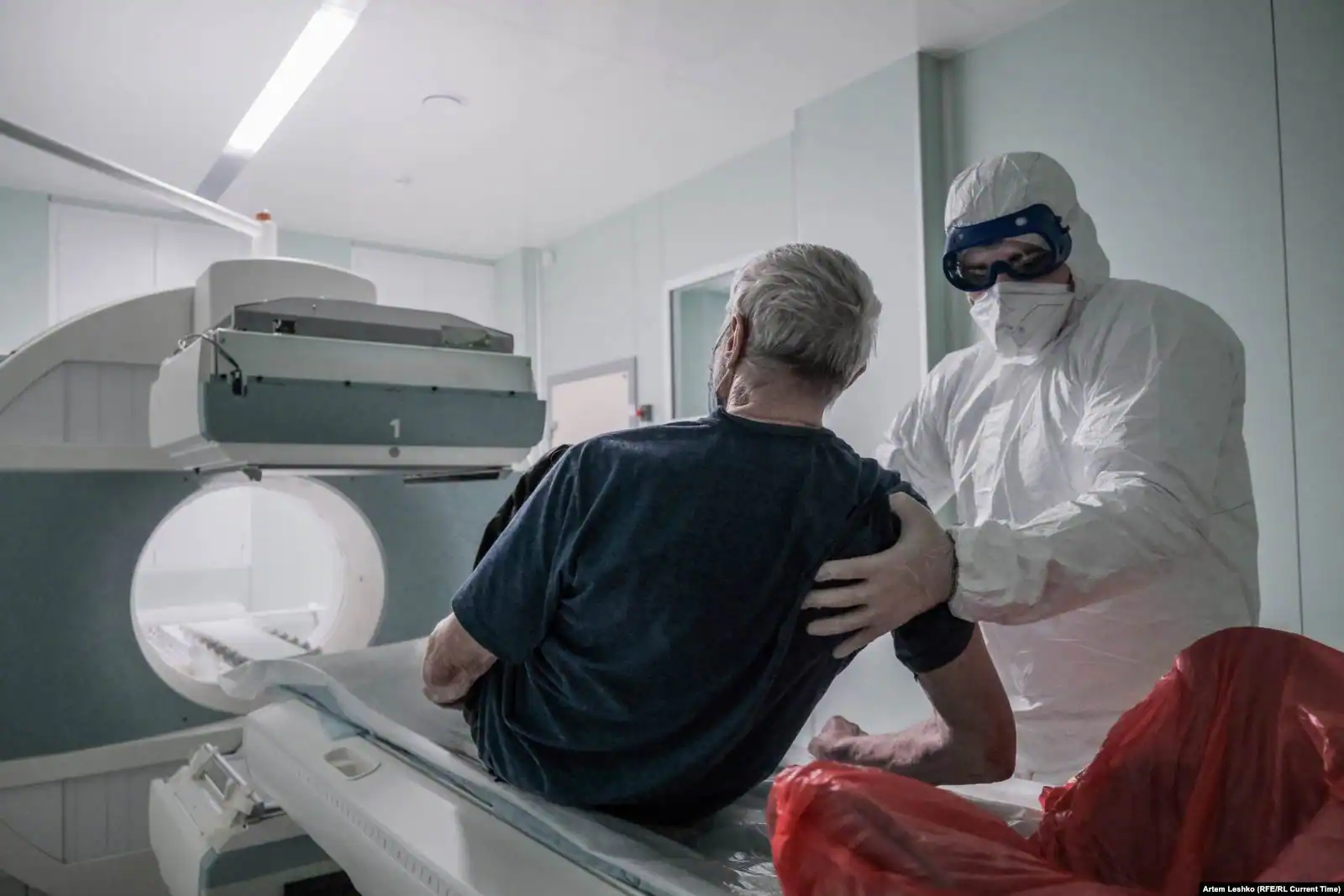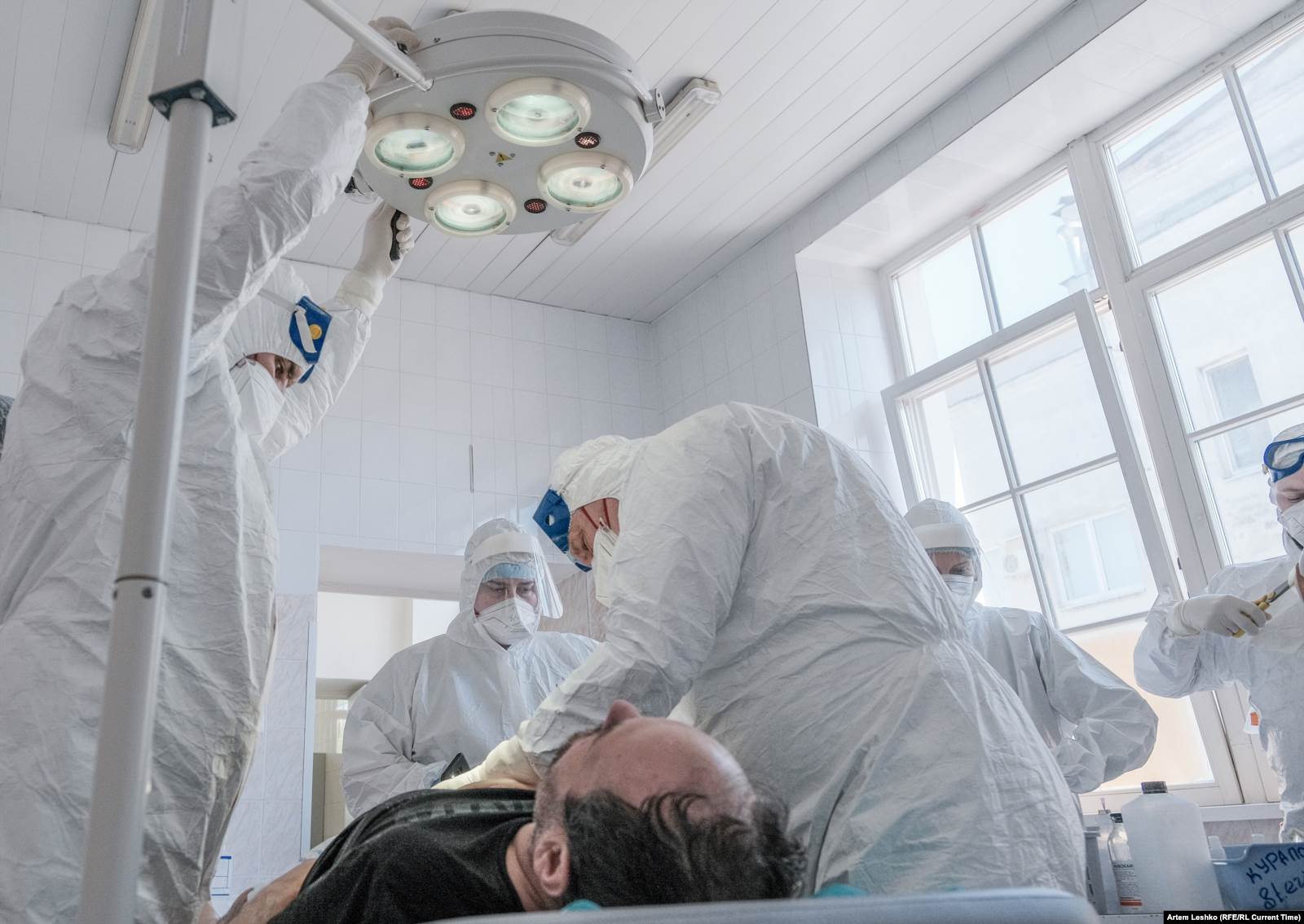 Корреспондент Настоящего Времени провел несколько смен в "красной зоне" вместе с врачами и пациентами инфекционного отделения Мариинской больницы ( материал на сайте НВ). Между обходами и операциями говорили о непредсказуемости и агрессивности вируса, о работе без выходных и невозможности привыкнуть к смерти, даже когда видишь ее каждый день.