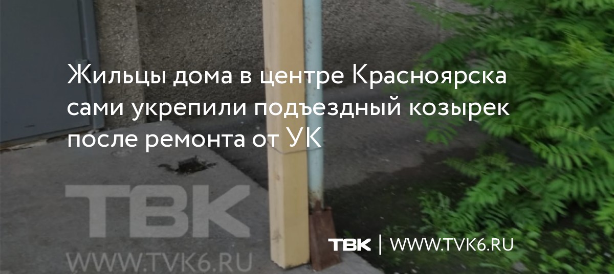 Жильцы дома в центре Красноярска сами укрепили подъездный козырек после ремонта от УК