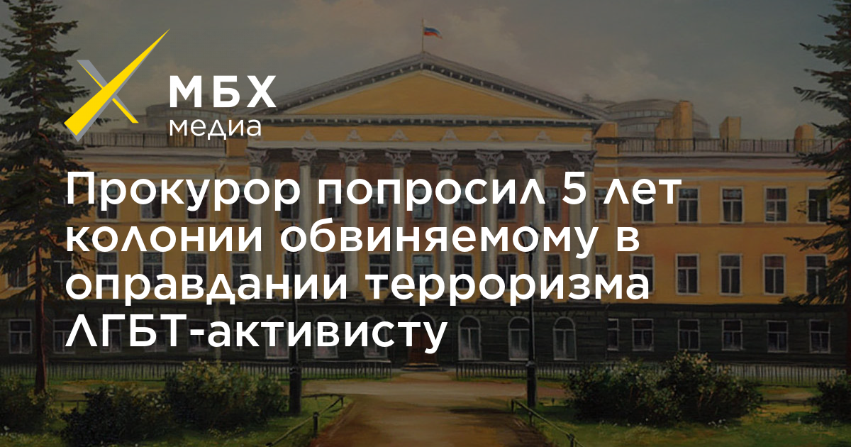 Прокурор на заседании 1-го Западного окружного военного суда судьи 2-го ЗОВС попросил 5 лет колонии обвиняемому в оправдании терроризма ЛГБТ-активисту Александру Меркулову, рассказал «МБХ медиа» адвокат Леонид Крикун.