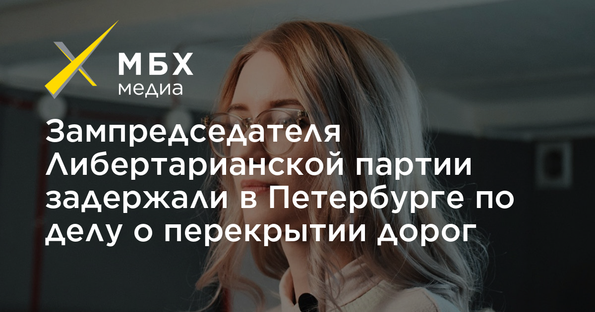 В Петербурге задержали Марину Мацапулину, заместителя председателя Либертарианской партии, ее доставили на допрос по ст. 267 УК в связи с делом о перекрытии дорог во время митингов в поддержку Алексея Навального, сообщила «МБХ медиа» пресс-секретарь партии.