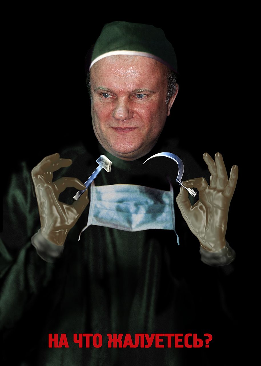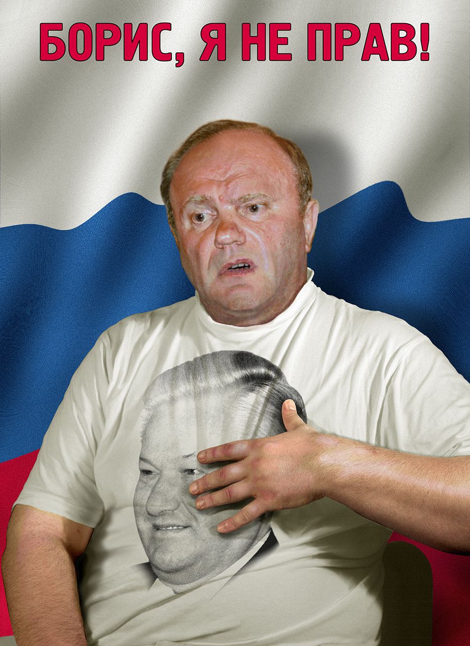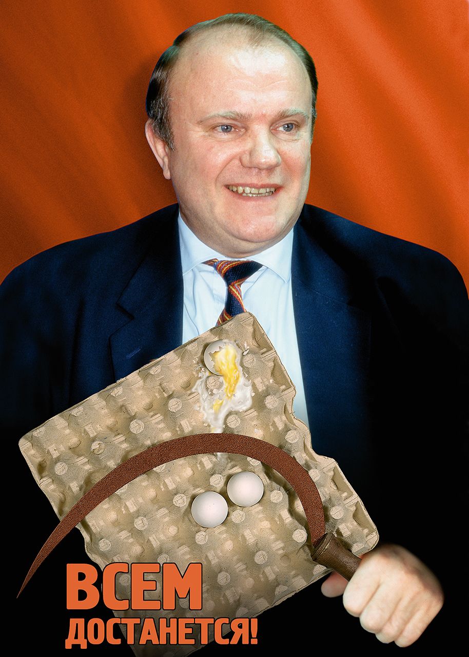 — Технически такой коллаж за день легко делается. Были, правда, некоторые сопутствующие сложности: например, в работе над плакатом, на котором Зюганов стоит со сверкающими серпом и молотом. Эти серп и молот вытачивал на станке замечательный мастер Алексей Соловьев, который тогда работал у меня дизайнером. Я не знаю, почему он это делал — может, дефицит серпов и молотов в стране был, на рынке не купишь…