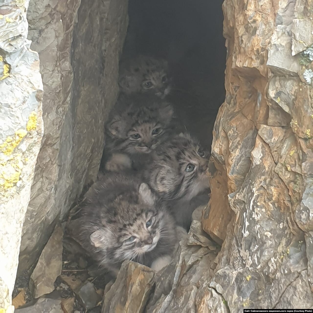 В Республике Алтай на границе с Монголией местный житель нашел логово манула с пятью котятами и снял их на видео. Об этом сообщается на сайте Сайлюгемского национального парка.