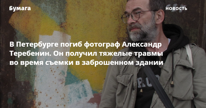В Петербурге погиб фотограф Александр Теребенин. Он получил тяжелые травмы во время съемки в заброшенном здании