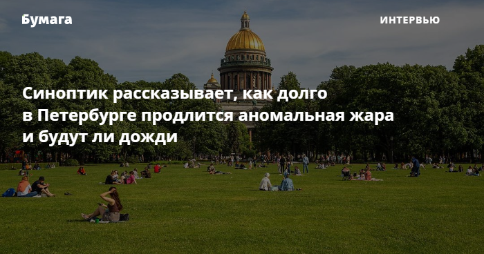 В Петербург в ближайшие дни придет аномальная жара, на выходных температура поднимется до плюс 29 градусов. «Бумага» поговорила с главным синоптиком города о том, почему пришла такая погода и как долго она продлится.