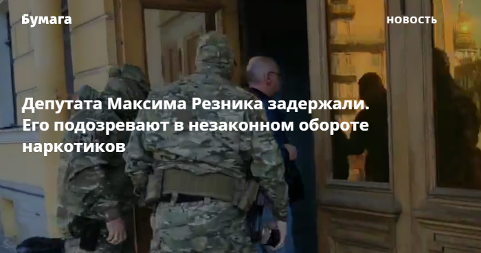 Депутата Законодательного собрания Петербурга Максима Резника задержали по делу о наркотиках в качестве подозреваемого, сообщает пресс-служба городского управления СК. Ранее он фигурировал в деле в качестве свидетеля.