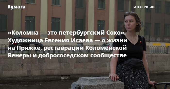 «Коломна — это петербургский Сохо». Художница Евгения Исаева — о жизни на Пряжке, реставрации Коломенской Венеры и добрососедском сообществе