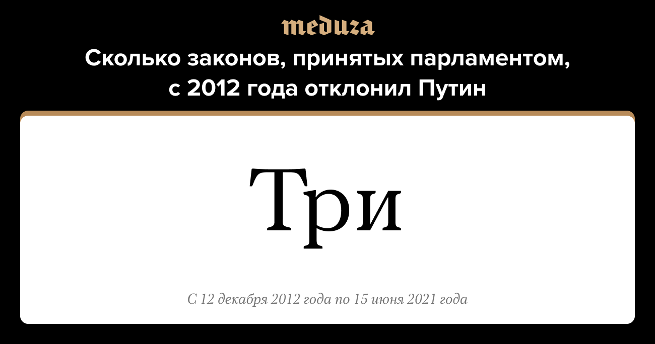 - Владимир Путин наложил вето на закон о наказании для журналистов за цитирование СМИ, главный редактор которого не может быть привлечен к ответственности.
