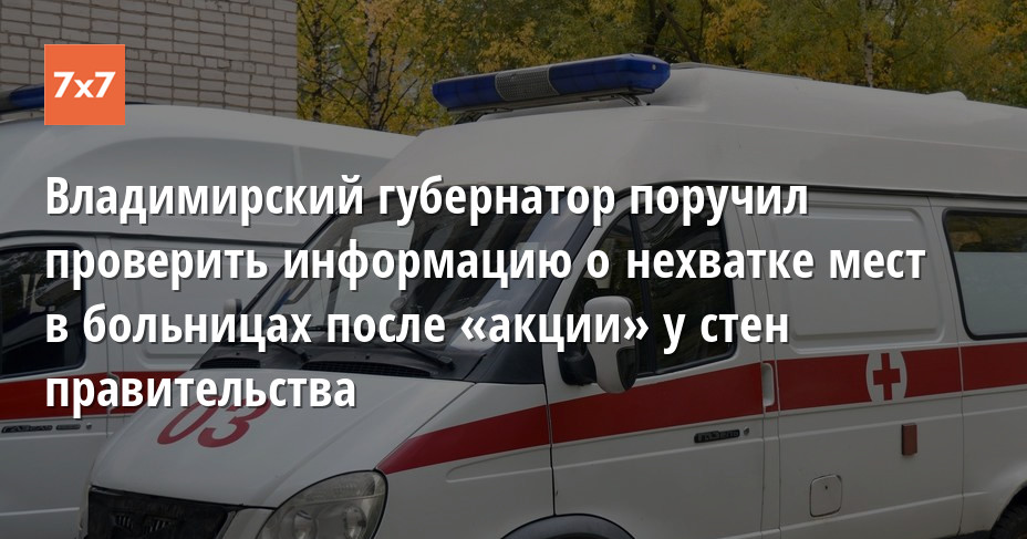 Губернатор Владимирской области Владимир Сипягин поручил проверить информацию о нехватке мест в больницах. О проблеме заявила бригада скорой помощи, которая 16 июня привезла пациента к зданию правительства региона. Медики сделали это после того, как им отказали в госпитализации больного из-за нехватки мест. Об этом «7х7» сообщили в пресс-службе областного правительства.