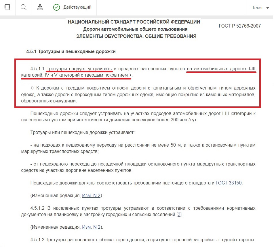 Но, судя по данному ГОСТ, на дорогах IV и V категории все-таки предусматривают устройство тротуаров, но только для дорог с твердым покрытием, например, таких, как автомобильная дорога Руэм - Яныково.