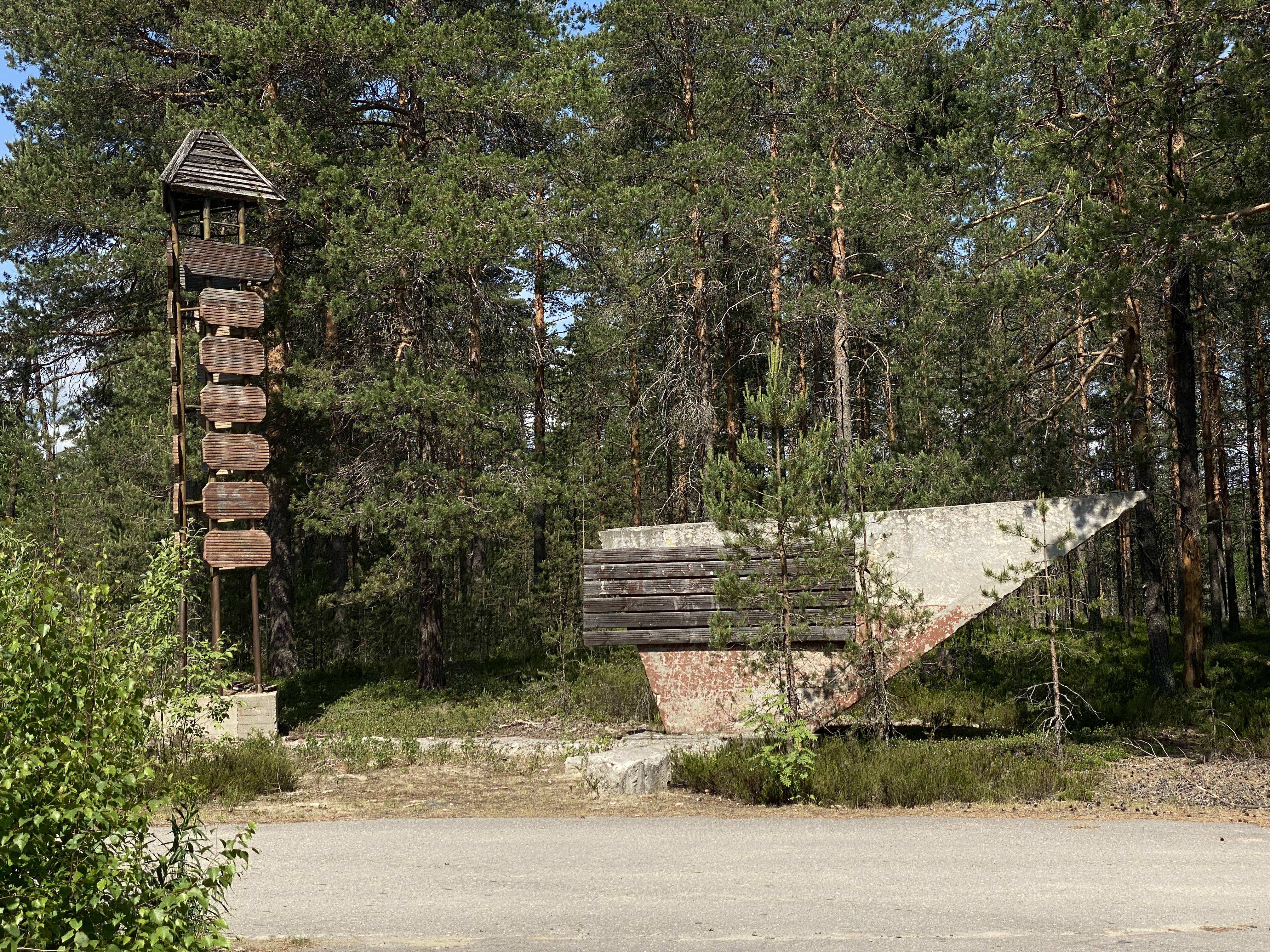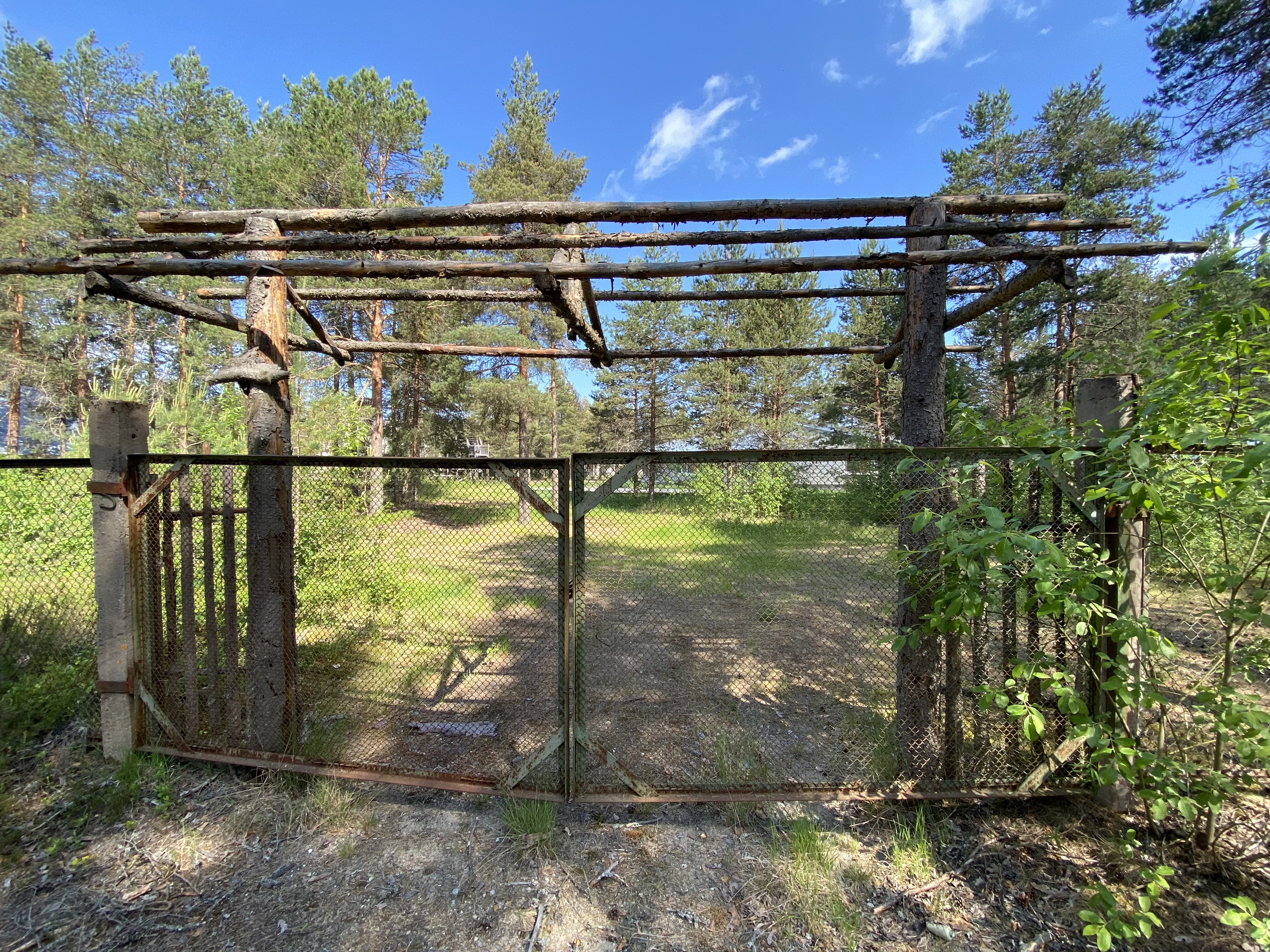 Перекресток на проселочной дороге, в центре старая бетонная стела со следами от букв "Karelia open". Дорога уходит в лес, через пару сотен метров ее перегораживает шлагбаум с выгоревшим и облезшим знаком "кирпич", вывеской, запрещающей вход посторонним, и деревянным стендом с надписью "Сямозеро. Парк-отель". Вокруг тишина, из людей – двое охранников вдалеке в деревянном доме, окруженном пустыми каменными корпусами бывшего детского лагеря.