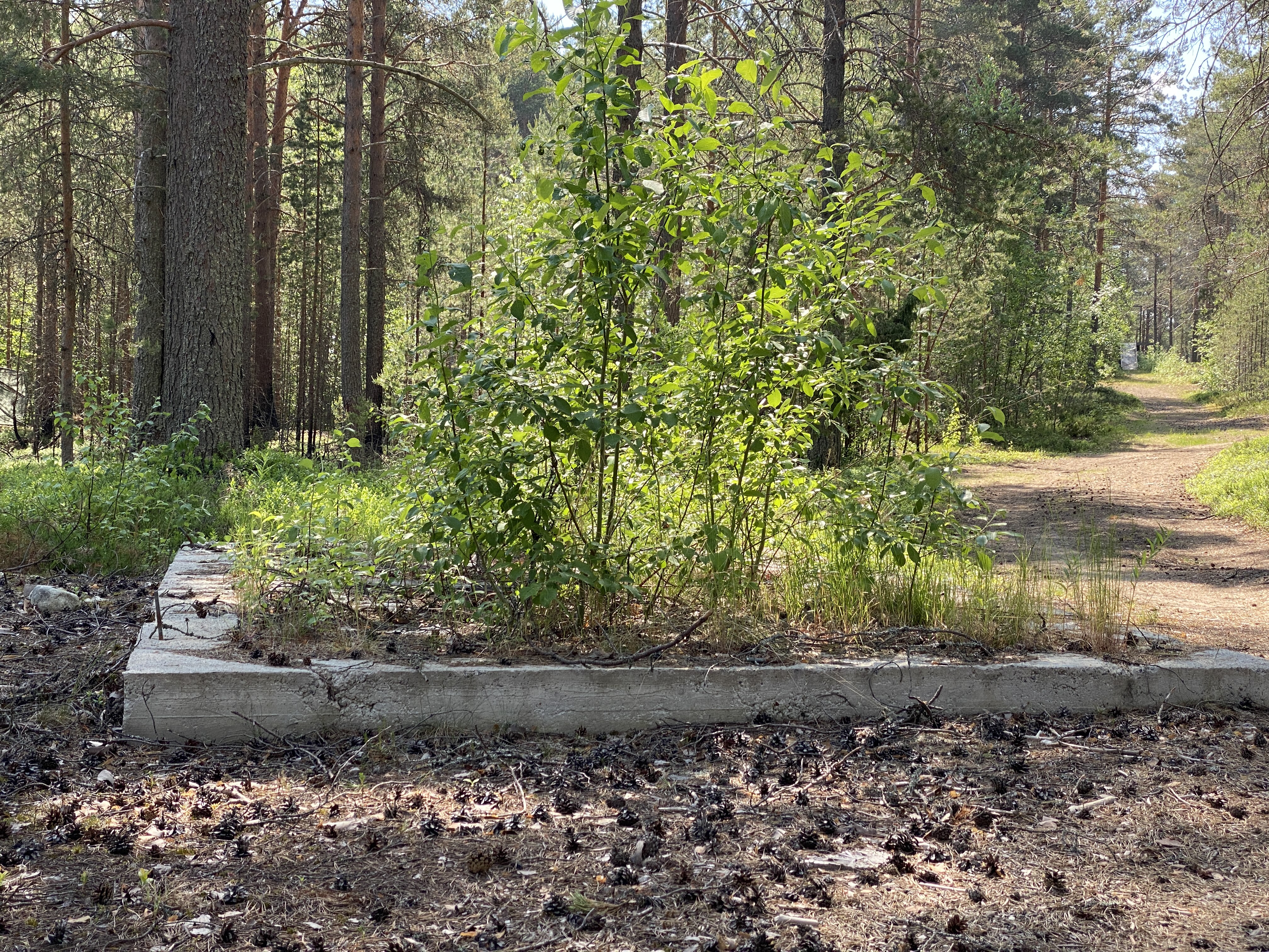 Среди деревьев мимо кирпичной постройки и мусора на берег озера ведет тропинка, на берегу пенсионеры лопатами кидают песок в прицеп, в стороне туристы разбили лагерь. В кустах – заросший фундамент. Раньше здесь были корпуса детских отрядов. Отсюда 17 июня 2016 года в последний раз ушли в поход дети, которые приехали отдыхать в "Парк-отель "Сямозеро", 14 из них утонули.