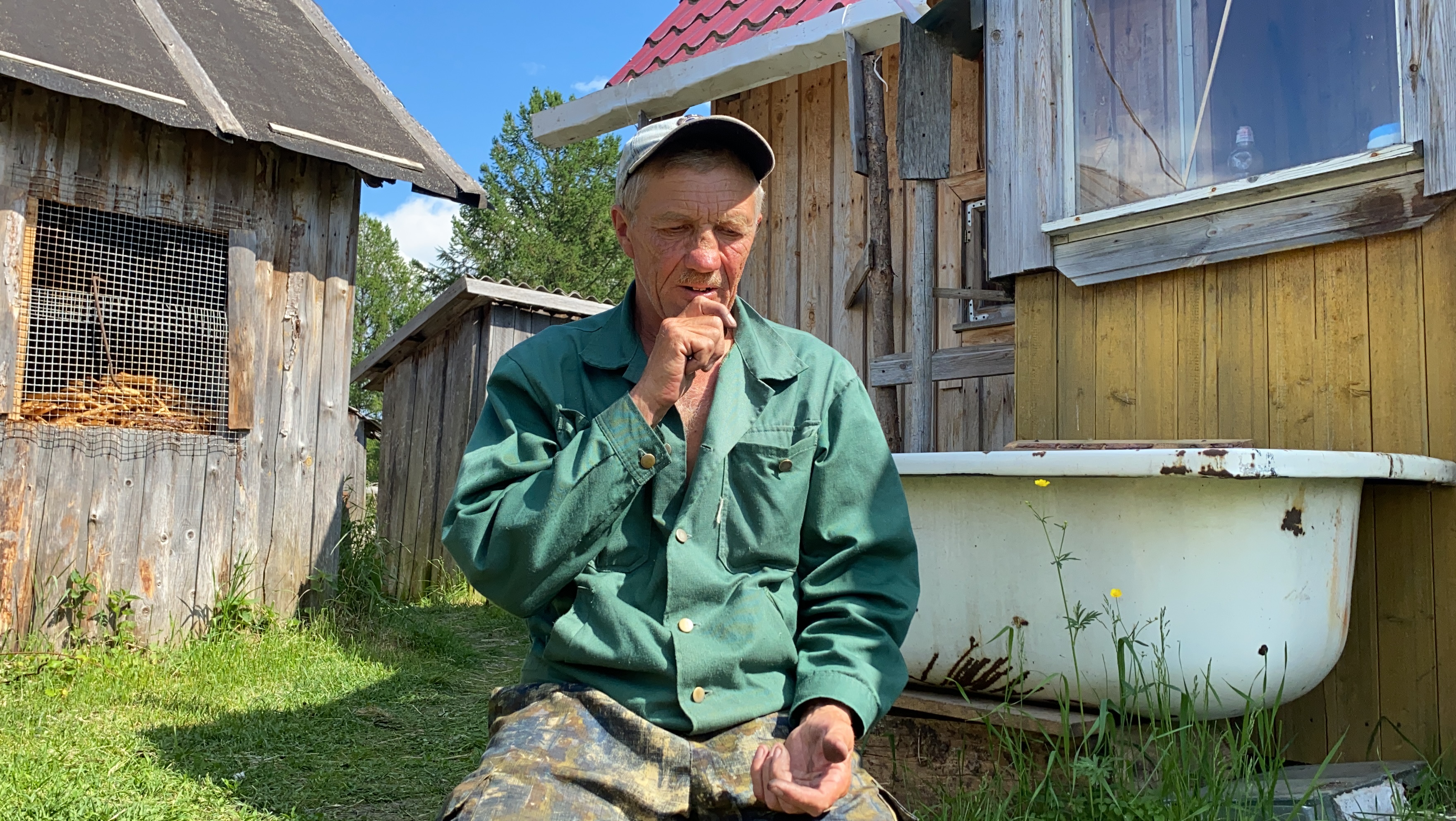 Владимир Дорофеев за разговором ремонтирует триммер – он косит траву по всей Кудаме. Пять лет назад он работал в кочегарке, откуда его и позвали на поиски детей вместе с другим местным жителем Андреем Севериковым. Накануне трагедии он ехал из Петрозаводска на машине и уже тогда все озеро было "белое" – стоял сильный шторм.