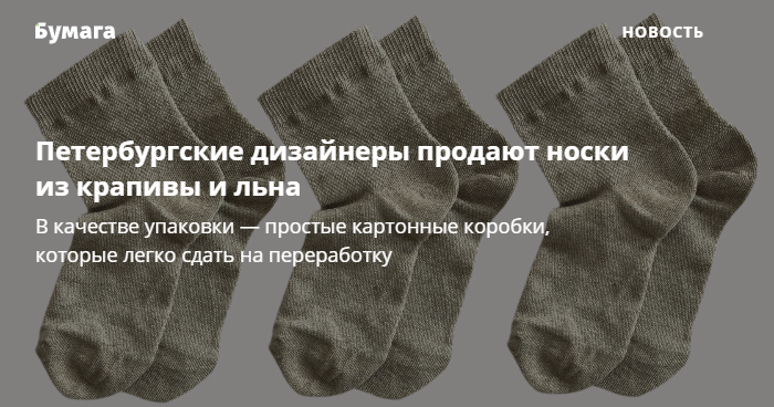Создатели Vatnique, Liberte! Egalite! Sexualite! и «Пти Пюрс» запустили новый проект — Socks Corporation. Они продают носки, сделанные из льна и крапивы.