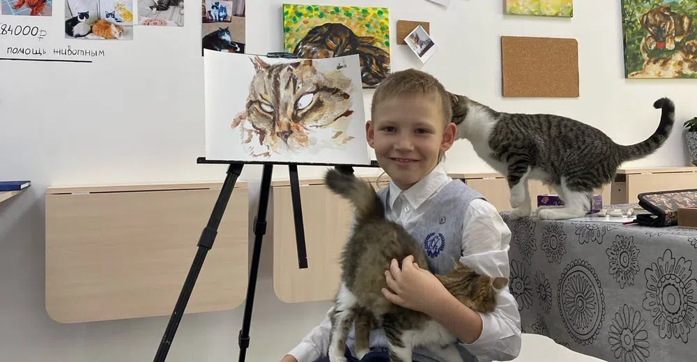 11-летний Паша Абрамов из Арзамаса рисует картины, чтобы помогать бездомным животным. Его творчество ценят за рубежом, а в России — не понимают