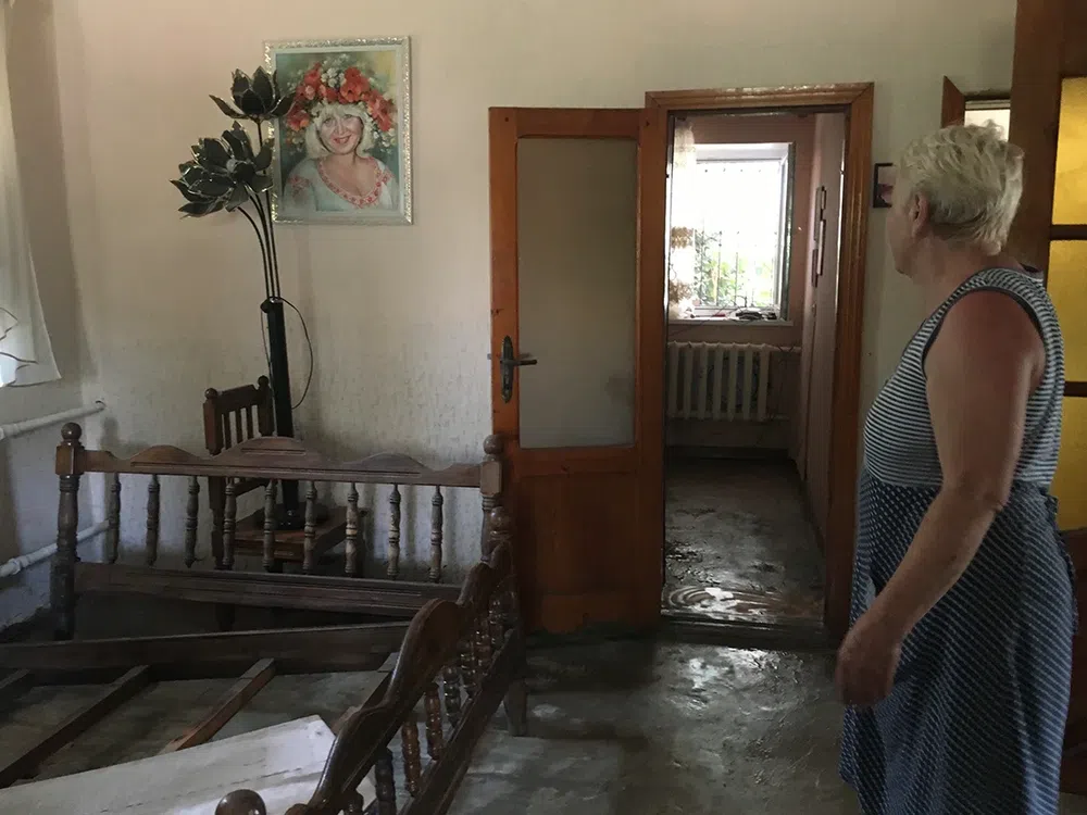 Затопленных улиц несколько. Одна из наиболее пострадавших — улица Жени Дудник, где стоят частные дома. Здесь откачивают воду насосами третьи сутки. Чем ниже по улице, тем больше воды. Туда-сюда снуют солдаты в резиновых сапогах. Из каждого двора выносят какую-то мебель. На дорогу выливают ведрами и тачками воду с илом. Идти возможно только по немного подсохшей траве. Навстречу выходит женщина чуть за шестьдесят.
