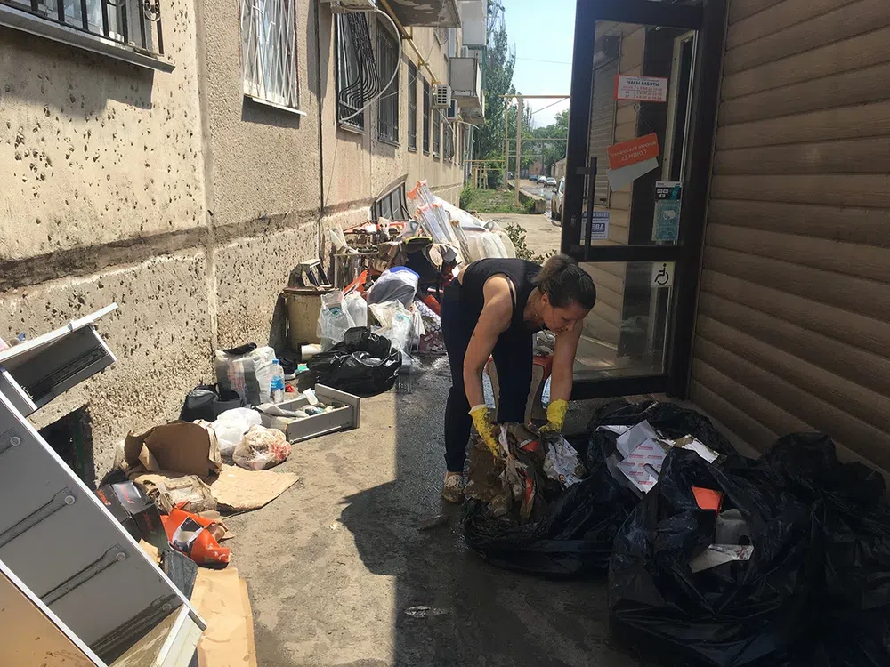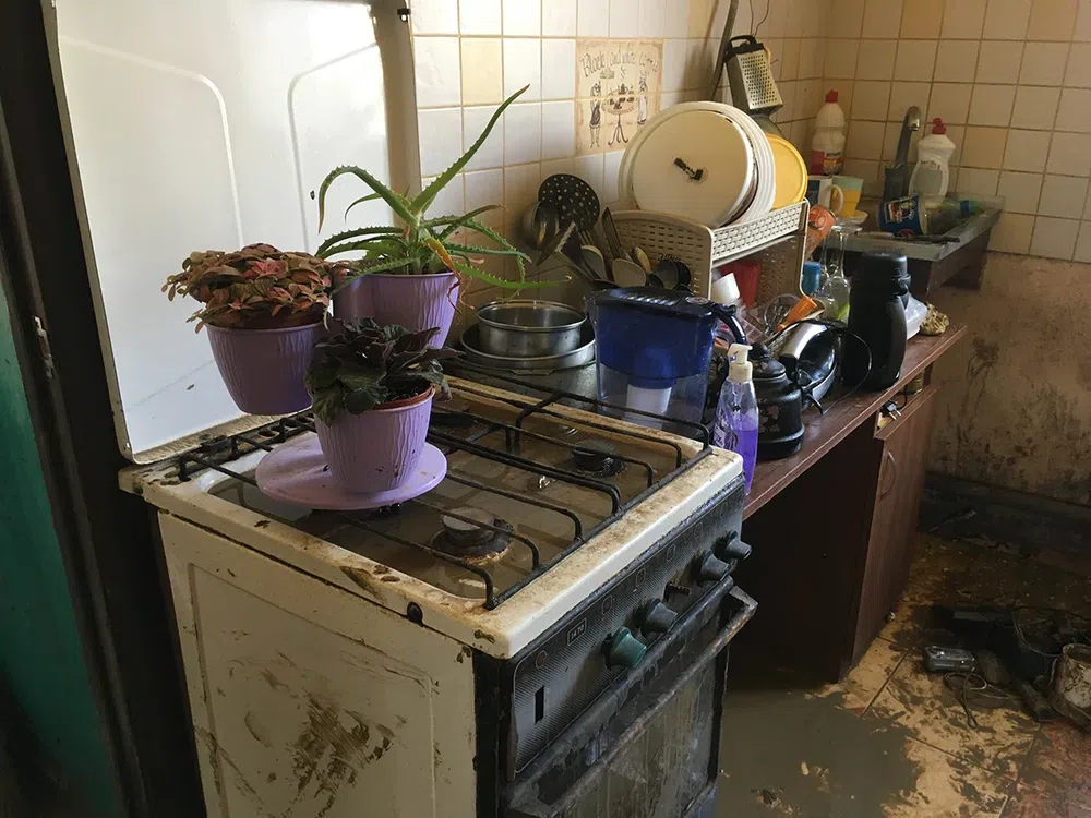 Полина в одиночку разгребает мусор, таскает ил и воду. Не представляет, как вернется домой сынок, здесь больше нет его игрушек и книжек — ничего не уцелело. Все вещи пришли в негодность.