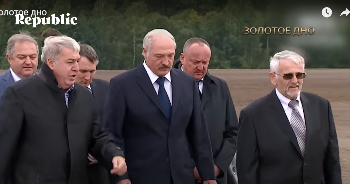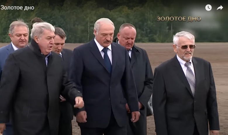 Президент Белоруссии Александр Лукашенко с российским миллиардером Михаилом Гуцериевым (слева). Кадр из фильма Nexta "Лукашенко. Золотое дно"