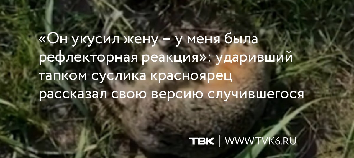 С редакцией «ТВК Красноярск» связался мужчина, который ударил суслика тапком. Красноярца зовут Юрий. Он рассказал, что все произошло случайно, когда суслик укусил его супругу.