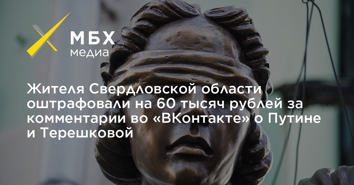 Жителя Свердловской области оштрафовали на 60 тысяч рублей за комментарии во «ВКонтакте» о Путине и Терешковой