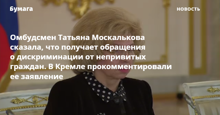 Омбудсмен Татьяна Москалькова сказала, что получает обращения о дискриминации от непривитых граждан. В Кремле прокомментировали ее заявление