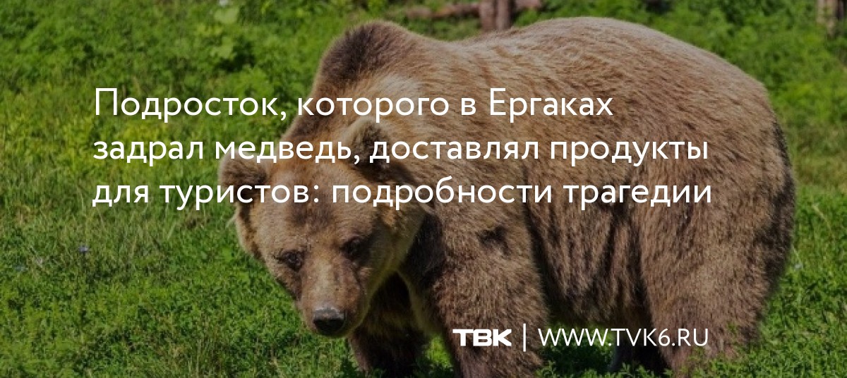 Как «ТВК Красноярск» рассказали в отделении охотнадзора по Ермаковскому району, медведь убил подростка днем 21 июня. Парень доставлял продукты в туристический лагерь по маршруту от горы Тушканчик до озера Светлое.