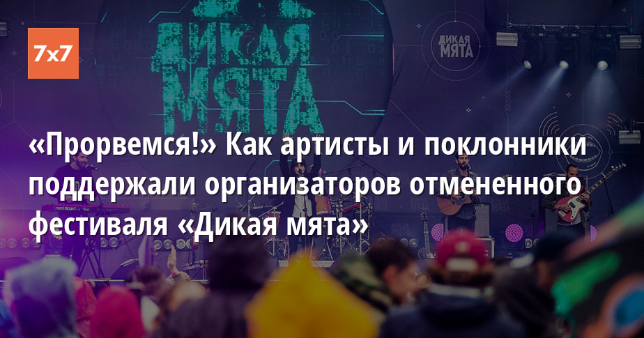 Музыкальный фестиваль «Дикая мята» должен был пройти с 18 по 20 июня в Тульской области, но был отменен в ночь перед началом, когда на площадке были полностью смонтированы все локации, заехали технические работники и волонтеры. Утром на территорию фестиваля приехали полиция, ОМОН и Росгвардия. Убытки от отмены фестиваля организаторы уже оценили в 96 млн руб., и эта цифра растет. Однако артисты, партнеры, волонтеры и участники фестиваля не остались в стороне и приняли меры поддержки — от финансовых до креативных. Кто и как помогал «Дикой мяте» после его отмены — в обзоре «7х7».