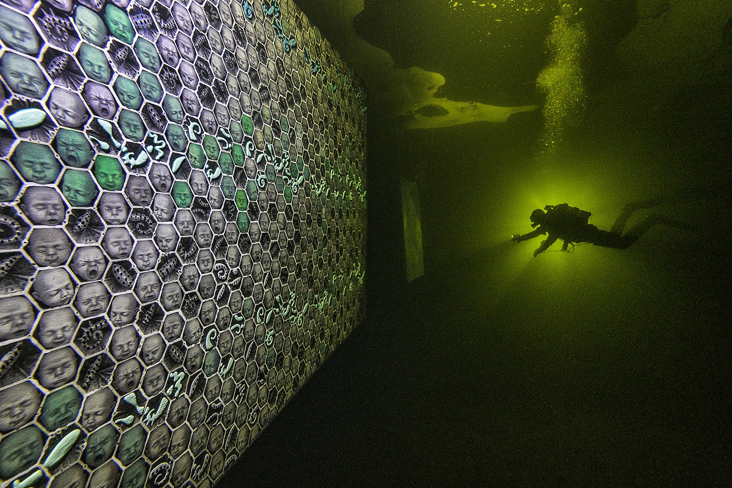 Выставка работ Дениса из серии «Сфера» подо льдом Белого моряФото: Виктор Лягушкин Часто образы приходят во снах. Это не кошмары. Что-то может померещиться, какие-то силуэты возникают, и ты думаешь: “Неужели показалось?” Плывешь туда, а там и нет ничего. А ты был уверен, что что-то видишь.