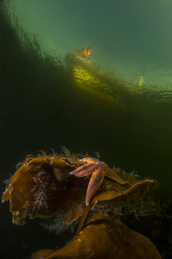 Дом в деревне НильмогубаФото: Виктор Лягушкин Белое море мне нравится всегда, но зимой особенно. За то, что появляется граница перехода. Наверху ровная сплошная поверхность льда, в которой для тебя пилят окошко, и ты как будто проходишь из одного мира в другой. Это сродни переходу в потусторонний мир. Там живут удивительные животные и загадочные демоны. Вот на камнях сидит большая креветка. Они прозрачная, и можно увидеть, как бьется у нее сердце. Это перестраивает мозг! И ты думаешь: “А как это вообще изобразить? Как передать идею Бога-творца, который создал такое чудо?”».