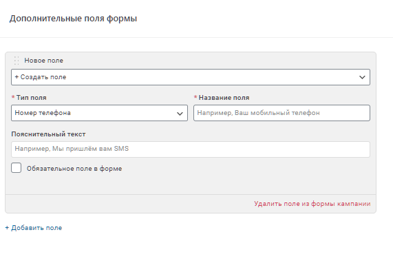 А так выглядит настройка дополнительных полей в административном интерфейсе сайта.