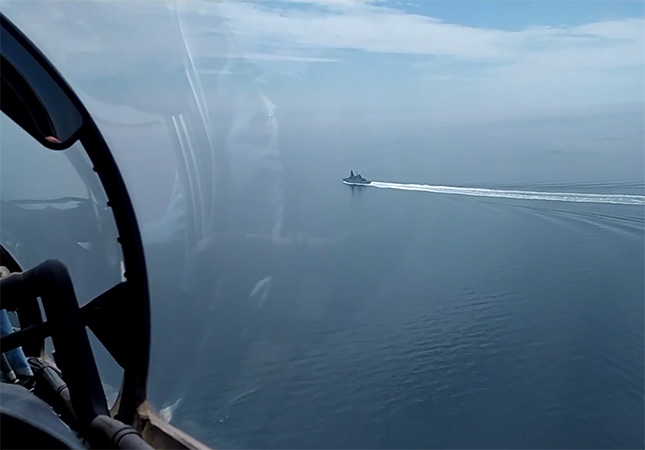 Российский самолет преследует Defender. Кадр видео Минобороны