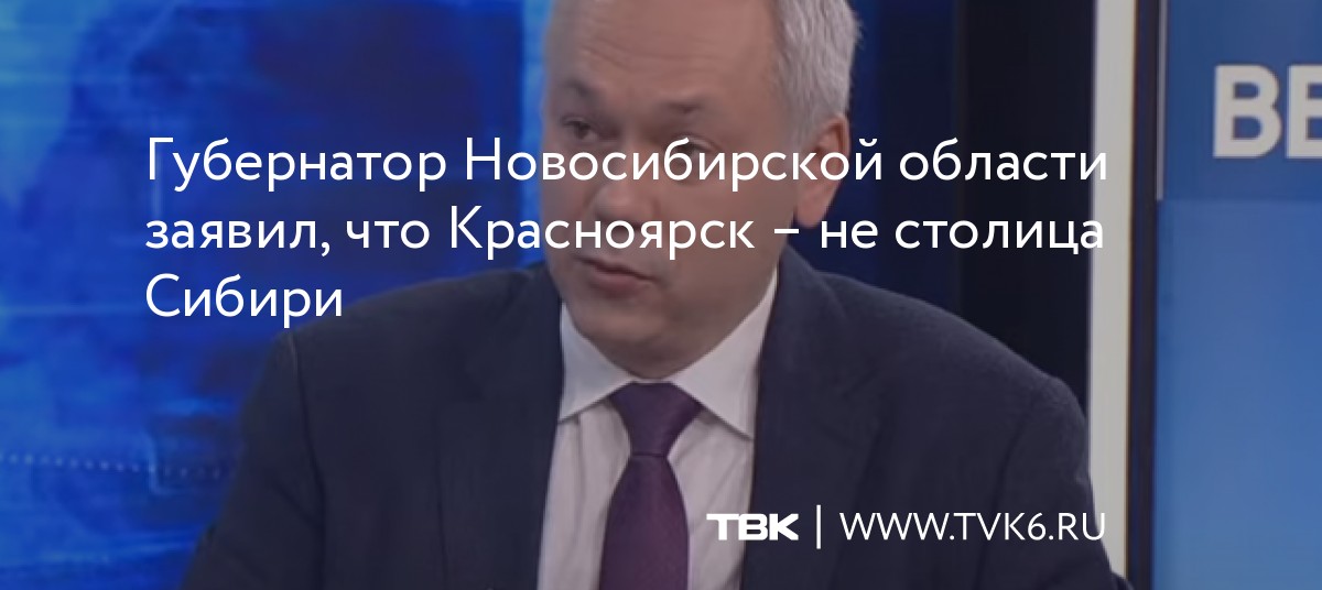 Андрей Травников в эфире программы «Вести Новосибирск» ответил на вечный вопрос, какой город является столицей Сибири. Судя по его словам, Красноярск не дотягивает до этого звания.
