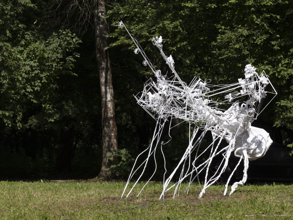 - Веранда с инсталляцией Людмилы Беловой находится прямо над другой ее работой — сайт-специфик-инсталляцией «Ожидалка», сделанной для «Новой антропологии».