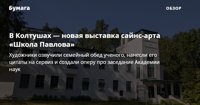 «Бумага» рассказывала, как научный городок Павлова в Колтушах превратился в один из центров российского сайнс-арта. Также читайте список самых любопытных петербургских выставок июня.