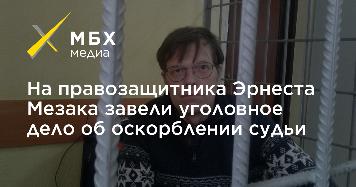 Против сыктывкарского правозащитника Эрнеста Мезака возбудили уголовное дело об оскорблении судьи (ст. 297 УК), сообщил у себя в телеграм-канале глава правозащитной группы «Агора» Павел Чиков.