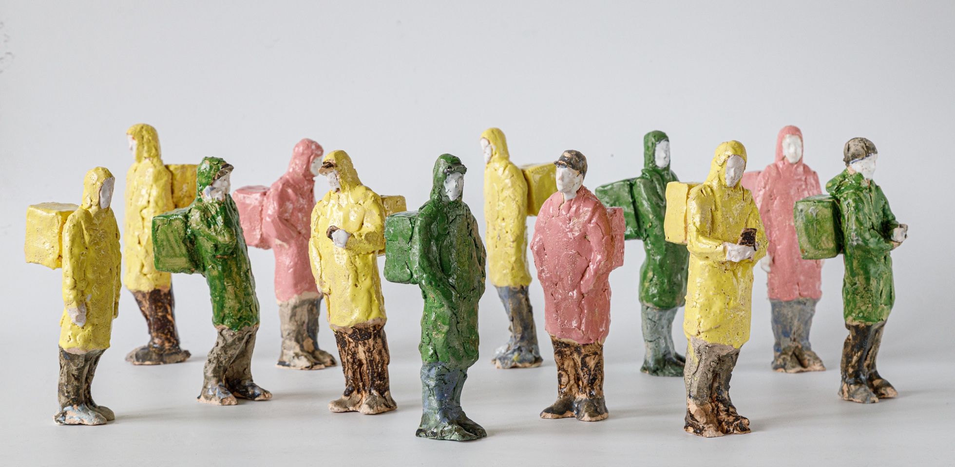 У [Виктора] Пономаренко интересная идея с исчезновением Биг Мака. Это такой поп-артистский прием, его использовал еще Клас Ольденбург в работе «Банановое мороженое на дегустации». Мне понравилась работа [Нади] Лихогруд «Курьеры» — мы видим везде доставщиков с зелеными и желтыми сумками, это поп-артистский ядовитый стиль. Энди Уорхол бы это отметил.