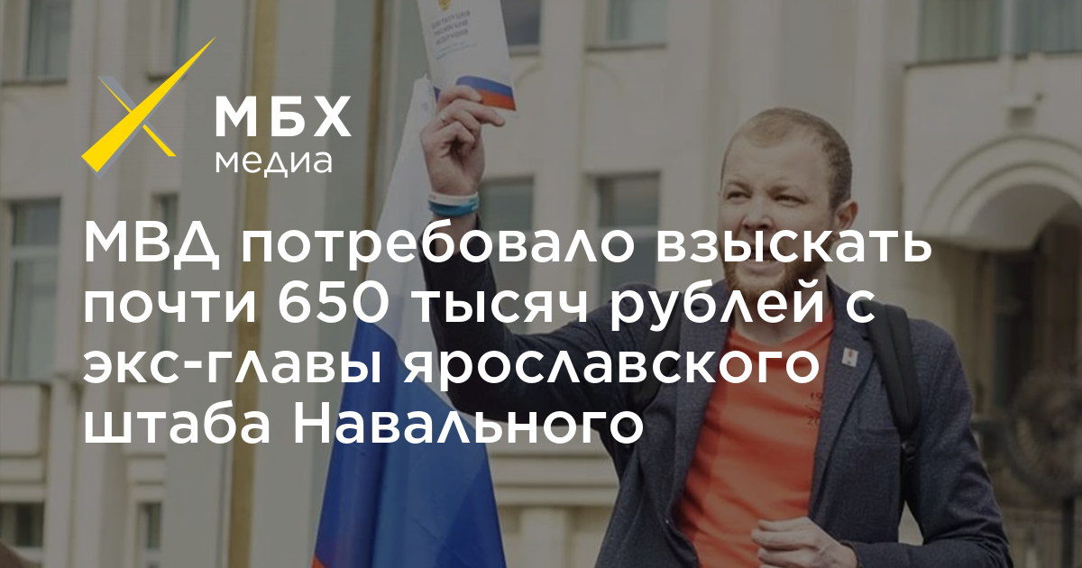 МВД потребовало взыскать почти 650 тысяч рублей с экс-главы ярославского штаба Навального